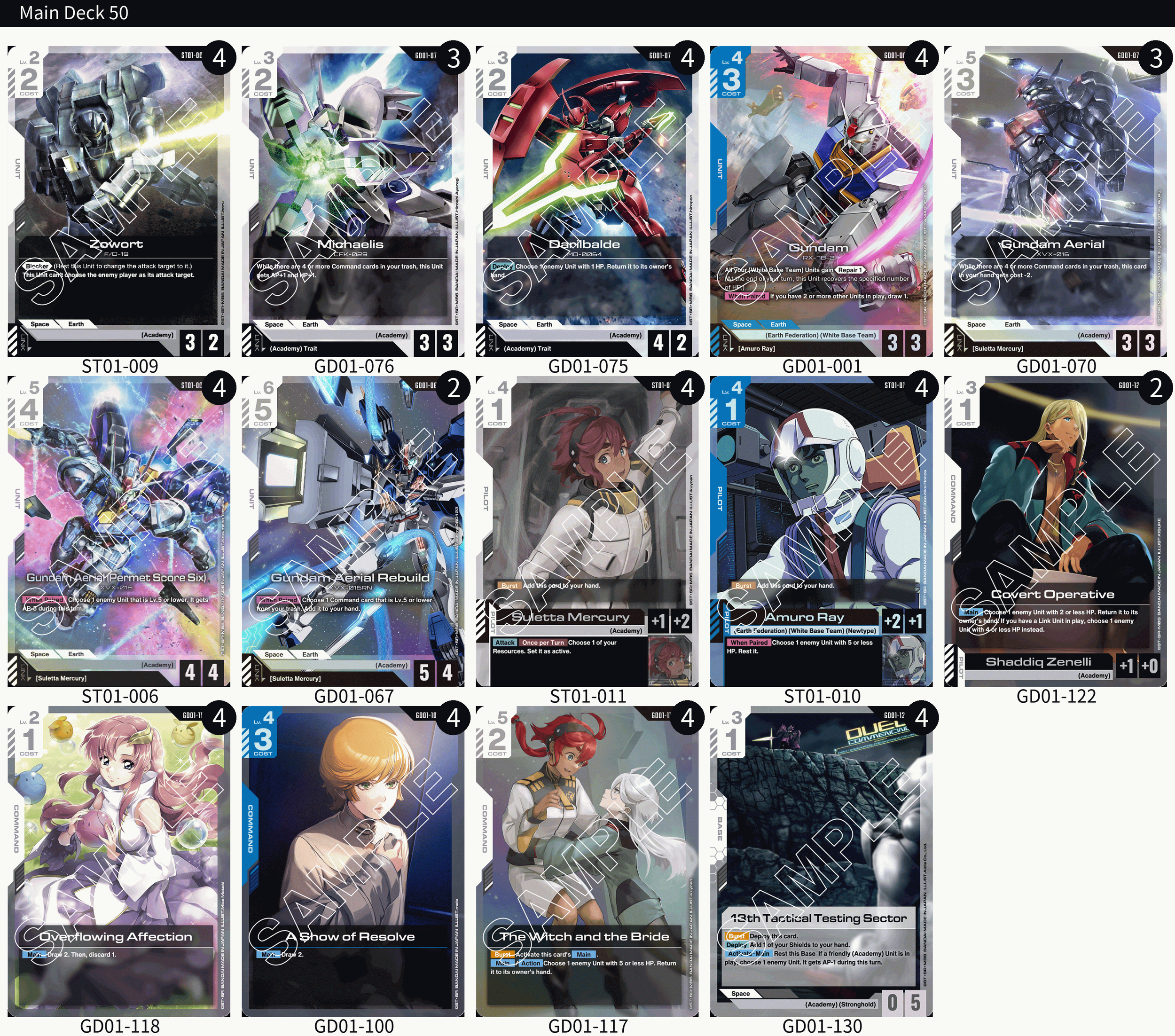 I’ve done considerable testing with this build of the Academy deck and find it to be a considerable threat into the current meta. While not as powerful as the other version of Blue/White using Unicorn, it’s a fair tempo option. Manage to disrupt your opponent early on and swing for game before their strongest plays come online, and you can certainly dominate the Gundam Card Game battlefield.