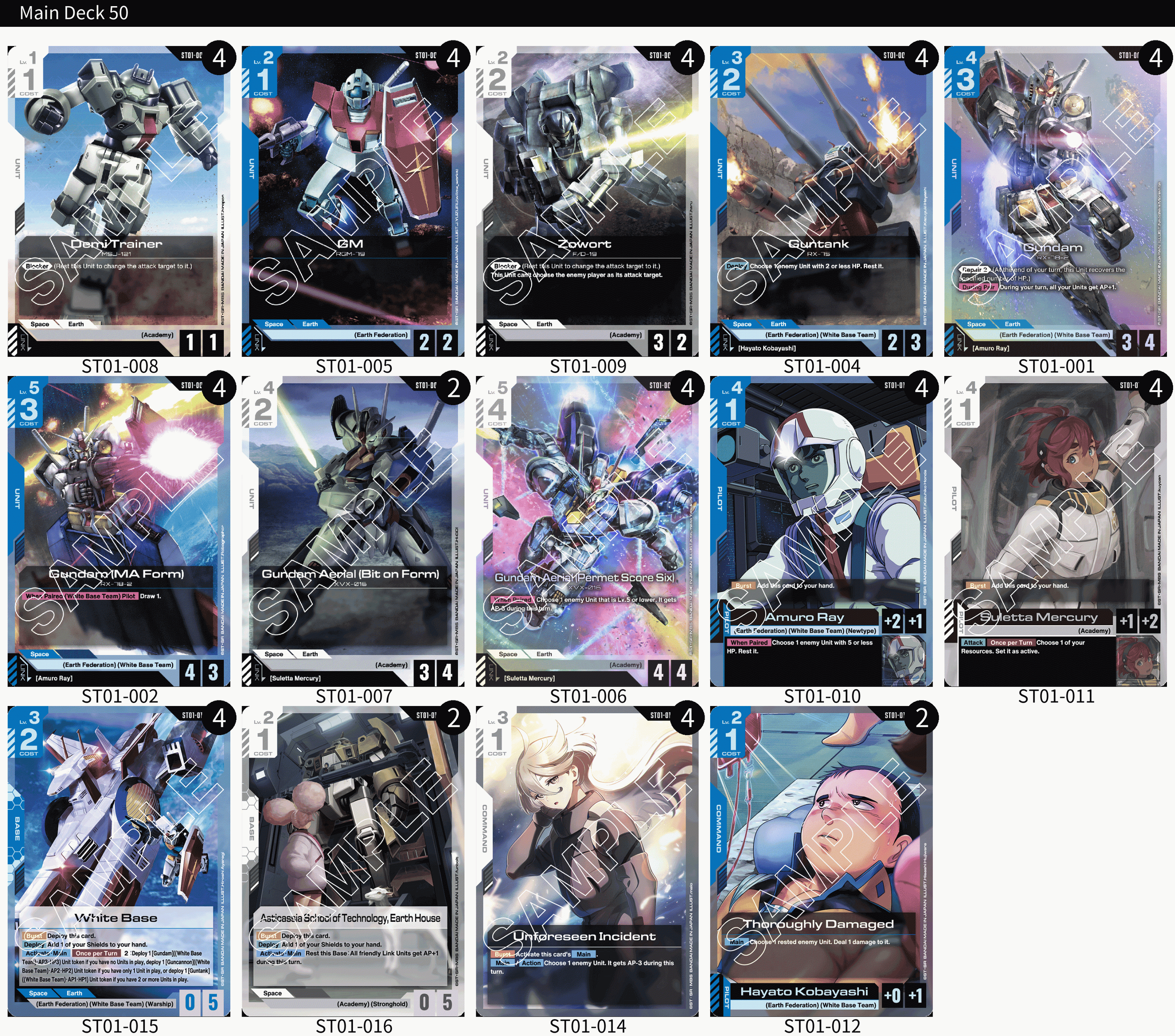 Having four of the powerful White Base (the strongest base in the game) and two of the Earth House in a starter deck upgrade feels right as doing so will ensure you find them when you need them despite there not being a ton of draw in these decks. White Base, meanwhile, can keep your battlefield filled with units to ensure you stay in control of the board.