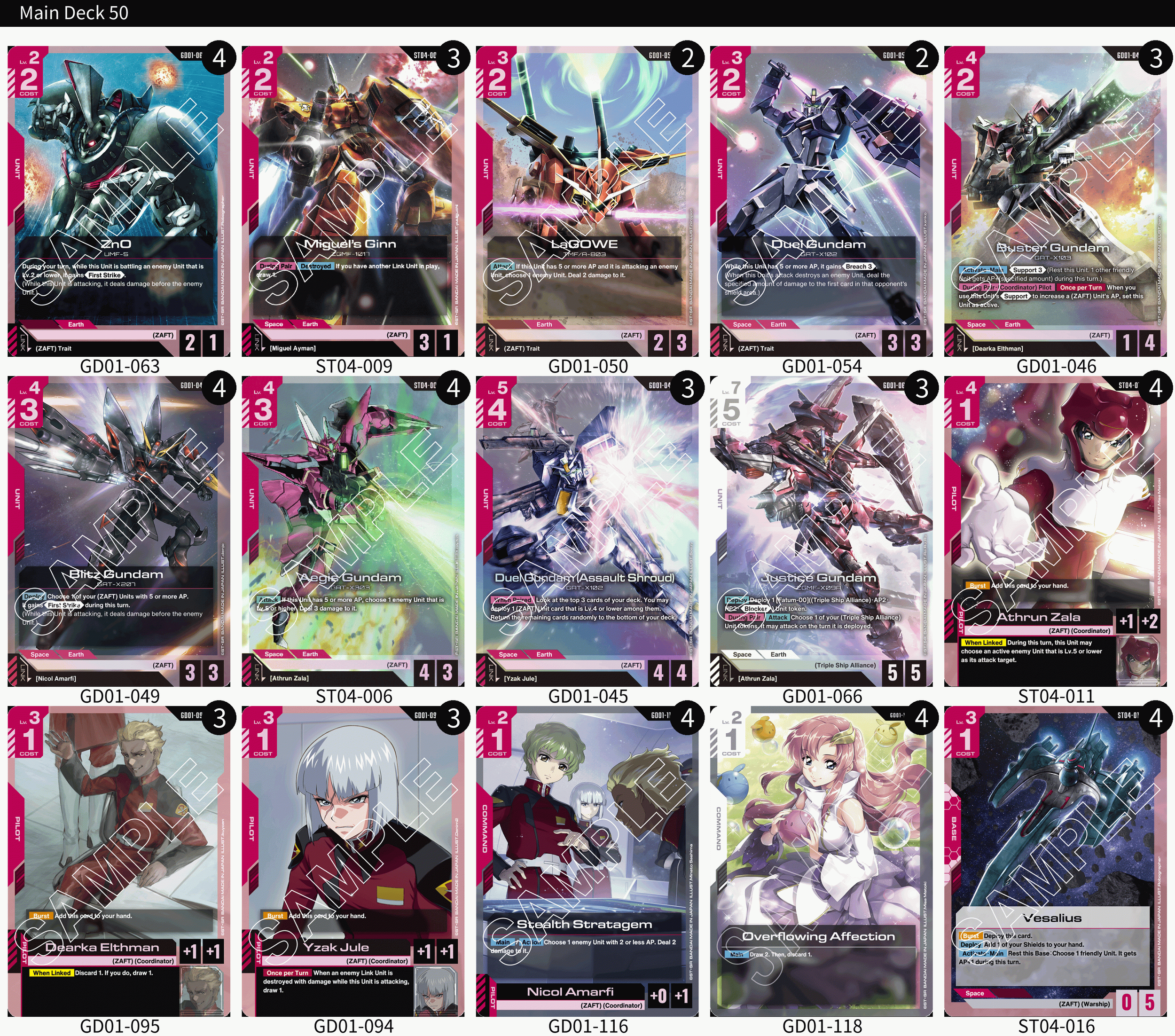 White/Red may not be the color combo that’s getting a ton of attention on the competitive Gundam Card Game scene, but there’s one deck strategy that’s actually quite solid, and that’s the ZAFT Red/White deck. Combo heavy and capable of some incredible plays, ZAFT is a very fast and powerful deck. Get the cards you need and you can absolutely compete with the meta. Below, let’s look at the custom build I’ve been testing and dig into what makes this deck tick!